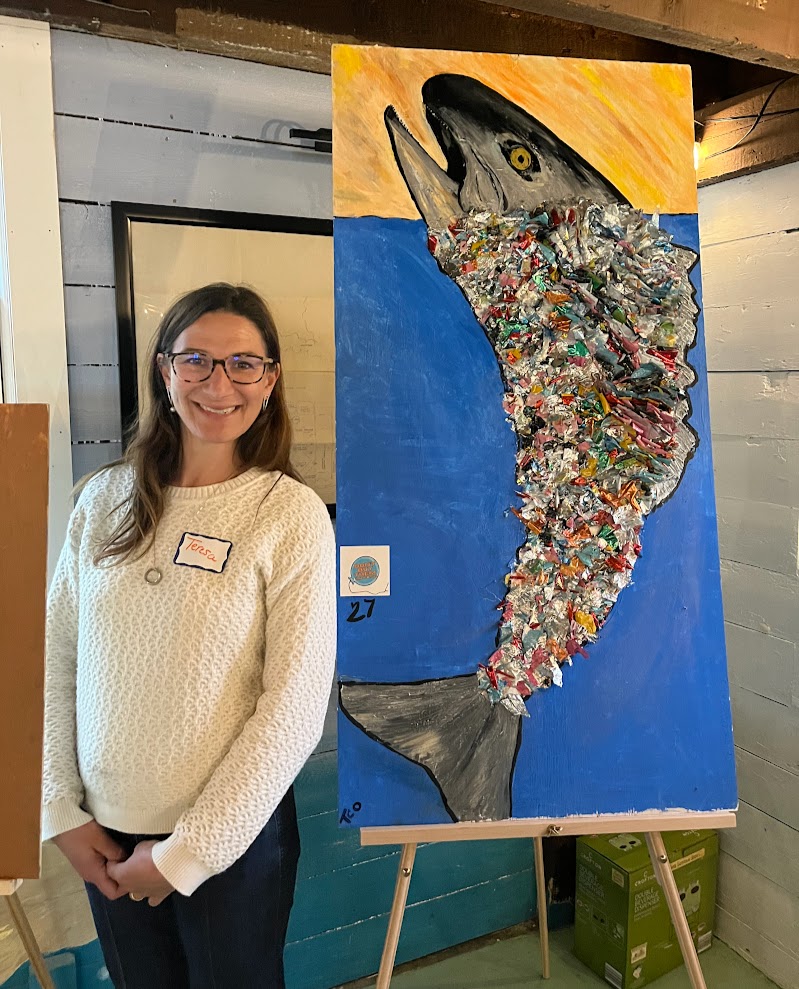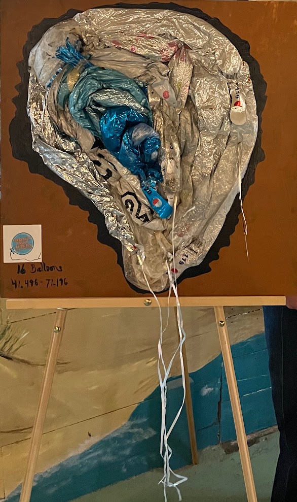 A highlight of the evening was an exhibit by eco-artist Teresa O’Connor, who displayed several marine-themed pieces she has crafted from hundreds of recycled balloons collected along local shorelines. Check out the photo gallery for images of her creative and thought-provoking work.